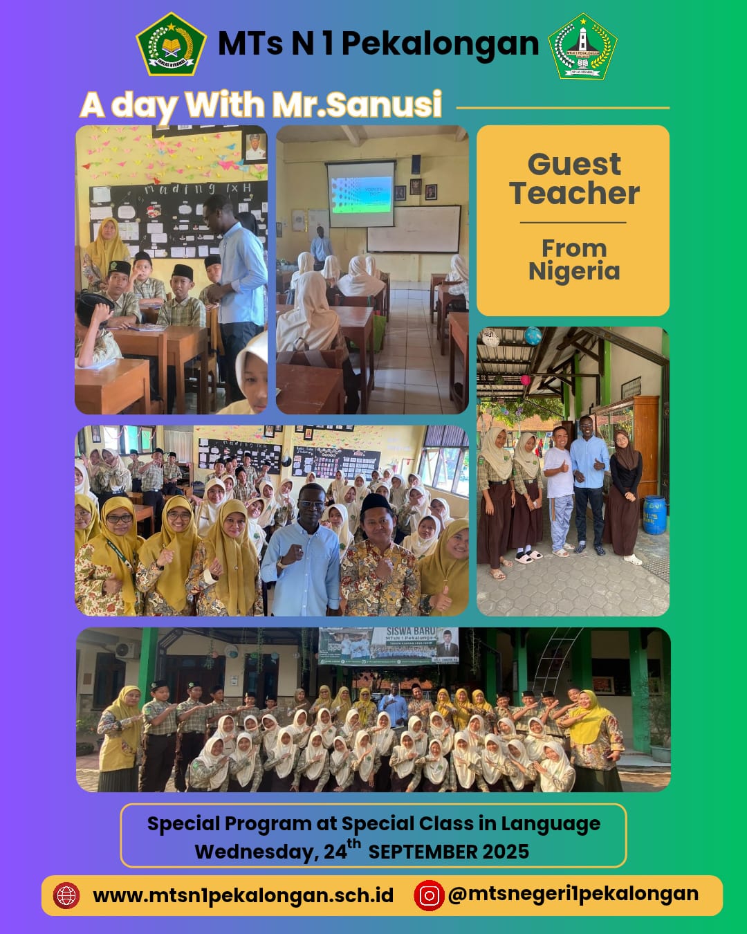 “Dengan adanya native speaker, peserta didik tidak hanya mempelajari teori, tetapi juga langsung berinteraksi dan merasakan penggunaan bahasa secara nyata sesuai konteks budaya,” ujar Komarudin (kepala MTsN 1 Pekalongan).